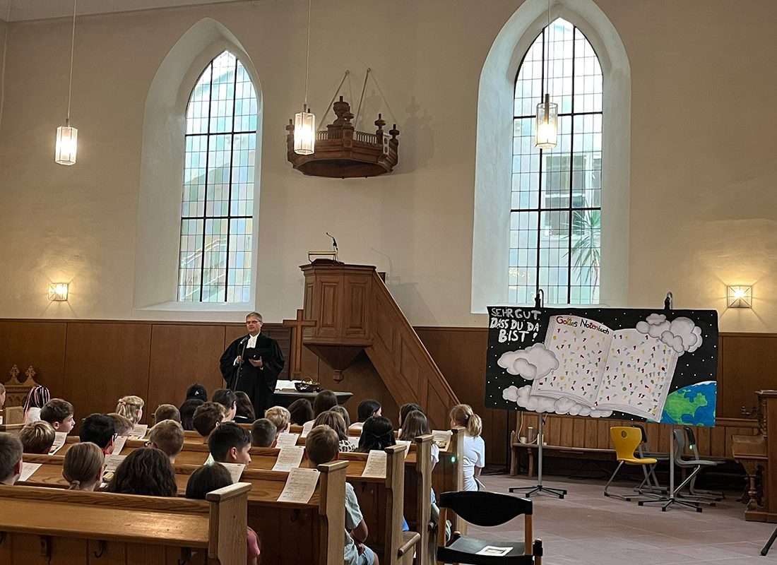 Musikalisch wurde der Gottesdienst mitgestaltet von unserem Kinderchor „Colorado“ unter der Leitung von Sonja Göbel, unterstützt durch Mathias Kurz am Keyboard und von unserem neuen Schulleiter, Herrn Weber, der das Orgelvor- und -nachspiel übernahm. Allen einen herzlichen Dank für den gelungenen Gottesdienst!