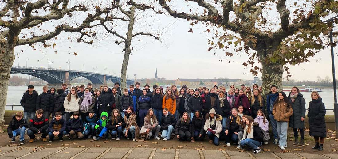 Am Donnerstag ging es nach Mainz. Gestartet hat der Tag mit einer Führung durch das Gutenbergmuseum in kleinen Gruppen. Nach einer spannenden Führung in deutscher oder französischer Sprache ging es weiter mit einer Stadtrallye in kleinen Gruppen und anschließend besuchten wir den Weihnachtsmarkt. Unser Gruppenfoto wurde am Rhein aufgenommen. Der Tag endete mit der Ankunft in Kaiserslautern um 17.30 Uhr und einem gemeinsamen Abend in den Familien. Am Freitag hatten wir einen gemeinsamen Schultag in den ersten drei Stunden. Danach durften die Franzosen den Kasimir-Saal und die unterirdischen Gänge besuchen und am Nachmittag starteten wir gemeinsam ins Wochenende, z.B. mit Bowling spielen. Am Samstag war ein eindrucksvoller Tag für alle, denn es war der Nikolaustag. Unsere französischen Freunde lernten diese deutsche Tradition bei uns kennen. Nach vielen kleinen Geschenken ging es los mit unterschiedlichen Zielen: Manche gingen shoppen oder trafen sich mit Freunden zum Eislaufen oder um weitere wunderschöne Erlebnisse zu sammeln.